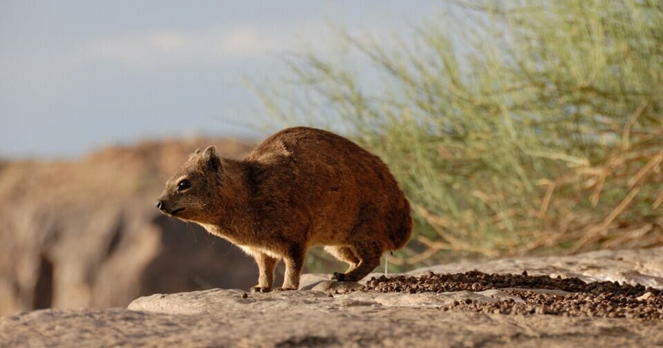 Капские даманы (Procavia capensis) напоминают крупных грызунов, но в действительности приходятся родственниками хоботным (Proboscidea) и сиренам (Sirenia). Они широко распространены в Африке и на Ближнем Востоке, здесь они селятся на скалах группами по несколько десятков особей. У капских даманов много необычных привычек. Например, из-за плохо развитой терморегуляции они подолгу греются на солнце, почти как рептилии. Кроме того, даманы мочатся и опорожняют кишечник в коллективных туалетах, которые используются на протяжении многих лет. А еще они по какой-то причине регулярно волочат зад по земле — так же, как это иногда