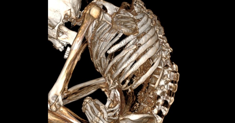 Исследователи определили, что мумифицированные останки действительно принадлежали взрослому мужчине ростом приблизительно 162–163 сантиметра, который прожил от 25 до 40 лет и умер примерно тысячу лет назад — около 894–1016 годов нашей эры, на что указал радиоуглеродный анализ. На томограммах ученые увидели множество переломов, которые привели к гибели человека. Так, у него оказались множественные переломы позвонков, в результате которых позвоночник буквально разделился на части, сильно сместившиеся друг относительно друга. Помимо этого, были сломаны многие ребра, обе лопатки, ключица и левые больше- и малоберцовая кости.