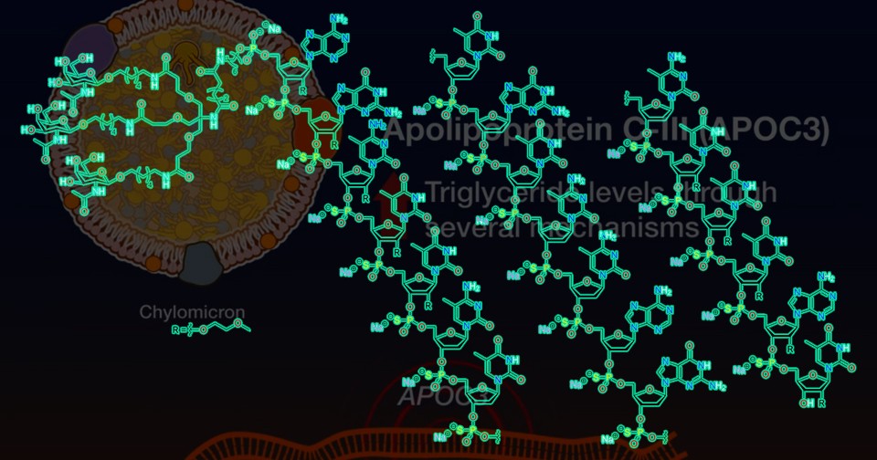 Тяжелая гипертриглицеридемия (уровень триглицеридов в крови натощак 5,65 и более миллимоль на литр) наблюдается примерно у каждого сотого взрослого человека в развитых странах и связана с повышенным риском атеросклероза и его осложнений, а также жизнеугрожающего острого панкреатита. Имеющиеся средства лечения, такие как фибраты и омега-3 полиненасыщенные жирные кислоты, лишь умеренно влияют на уровень триглицеридов и не снижают риск панкреатита. Препарат олезарсен представляет собой конъюгированный с N-ацетилгалактозамином антисмысловой олигонуклеотид, связывающий матричную РНК аполипопротеина C3. В результате плазменный уровень этого белка снижается, что способствует клиренсу триглицеридов за счет активации липопротеинлипазы и повышения захвата печенью богатых триглицеридами продуктов распада липопротеинов. Препарат уже успешно прошел вторую фазу испытаний у пациентов с высоким сердечно-сосудистым риском.